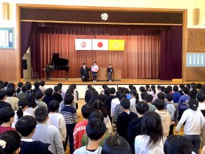 9月17日(水)朝、音楽集会(2年生発表)がありました。まず全校で「tomorrow」の合唱をしました。心地よく美しいハーモニーが体育館に響きました。その後、2年生による「世界中の子どもたちが」の歌が発表されました。歌詞 […]